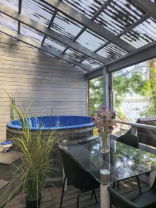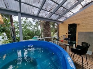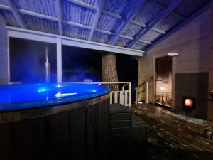 Kubilas su hidromasažu papildomai 50 EUR dienai darbo dienomis, 60 EUR dienai savaitgalį, pirtis – 30EUR dienai.