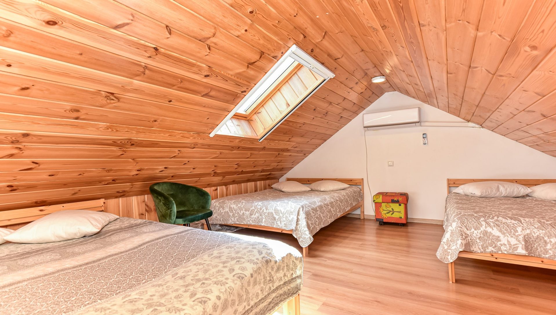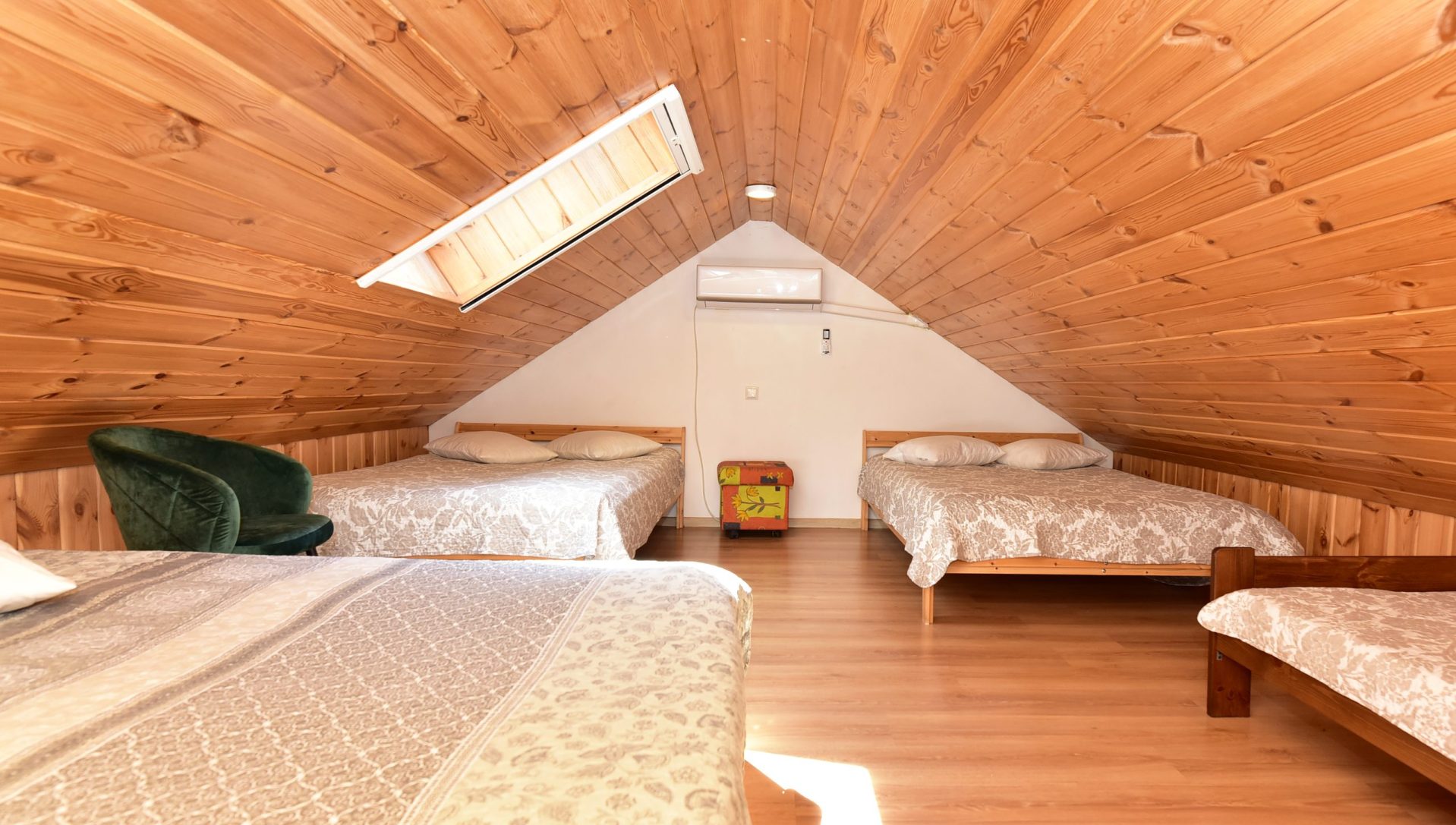 Namelyje yra pagalvės ir antklodės, užvalkalus reikia atsivežti savo. Patalynę galima išsinuomoti (viengulis komplektas – 3EUR, dvigulis komplektas – 5EUR.)