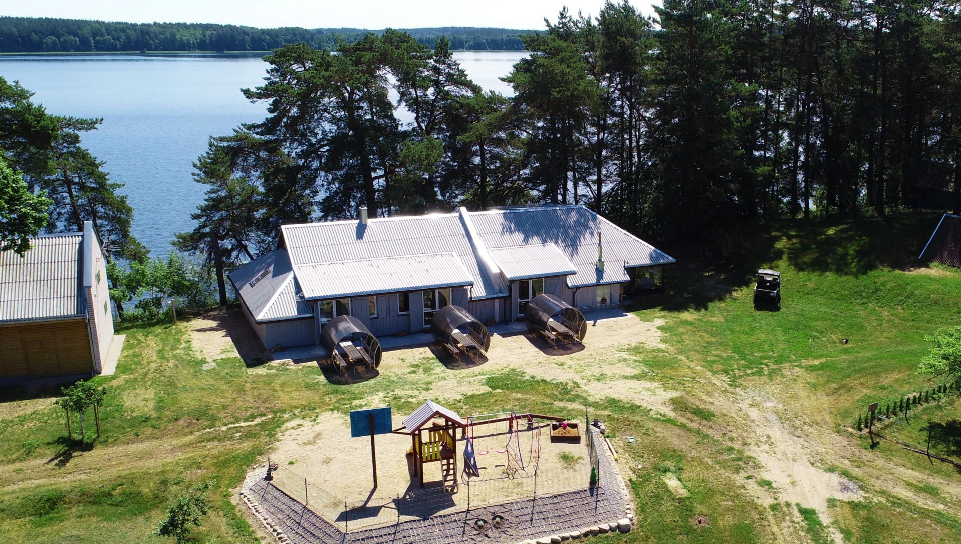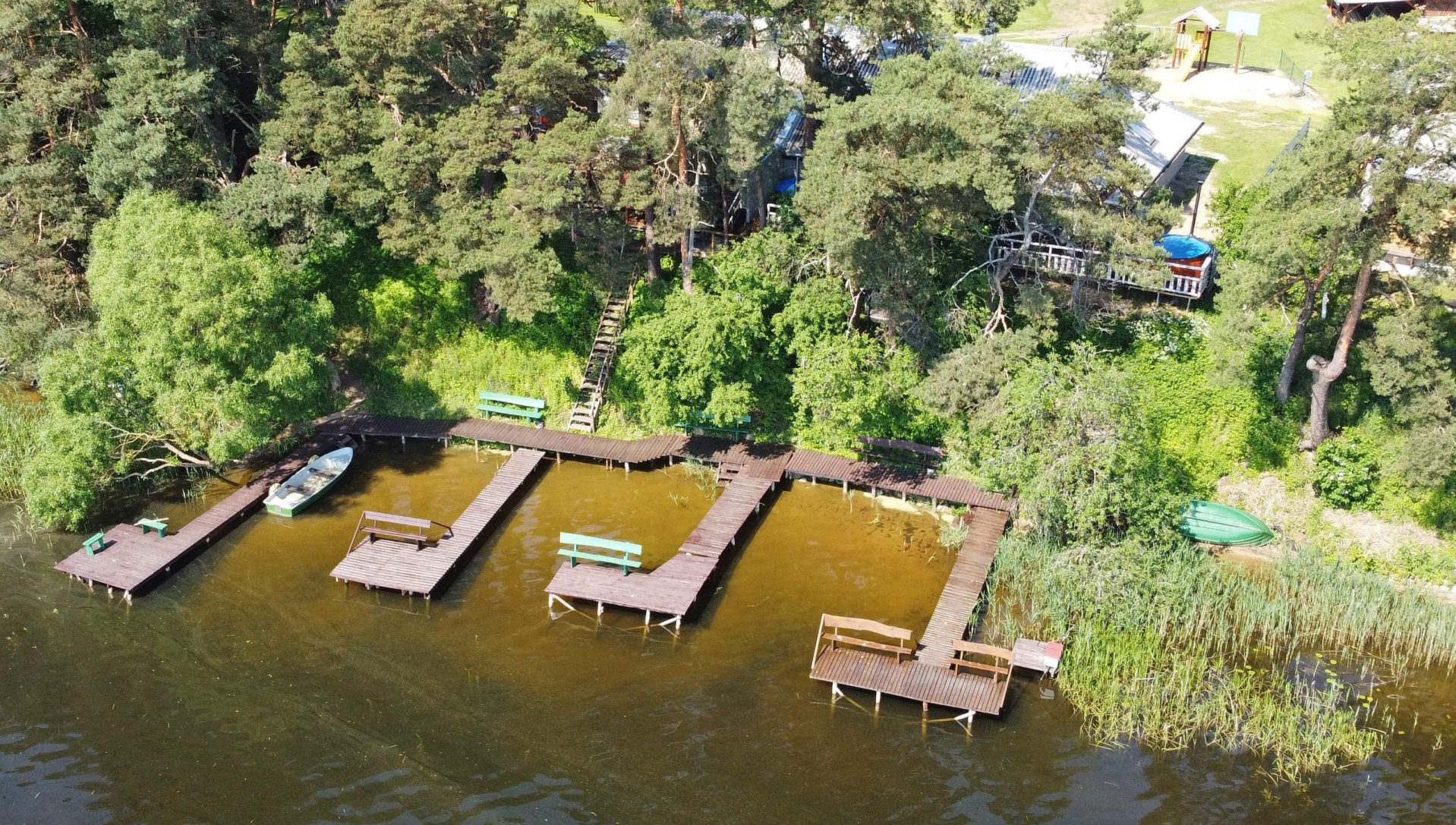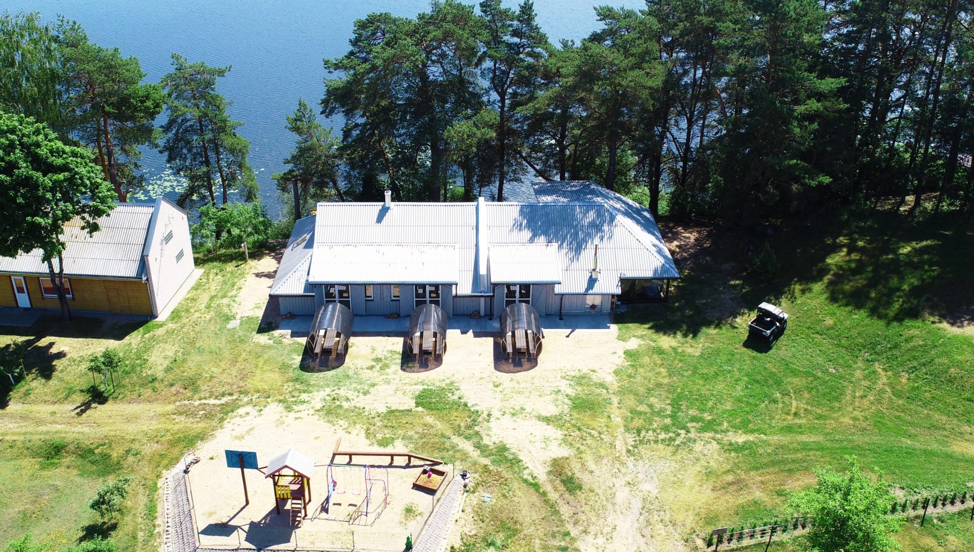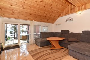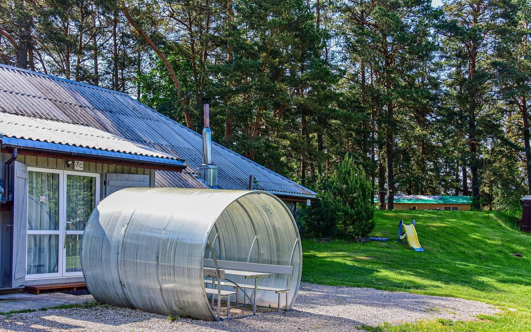 Dviejų aukštų kotedžiukas ant ežero kranto. Pirmame aukšte svetainė su virtuve, tualetas, dušas. Įrengtas grindinis šildymas. Stovi sofa-lova, minkštas kampas, valgomasis stalas. Antrame aukšte viena dvigulė ir viena viengulė lovos. Viso kotedžiuke 6 miegamos vietos. Yra televizorius, internetas. Įrengtas kondicionierius. Įrengta terasa su kubilu ir pirtimi. Iš terasos nusileidimas laiptais iki pat ežero. Lauke pavėsinė, kurioje telpa 6 žmonės. Šalia vaikų žaidimų aikštelė. Įrengtas krantas maudytis bei keturi lieptai. Pakrante ir lieptais naudojasi 7A, 7B, 7C, 7D kotedžiukų gyventojai.