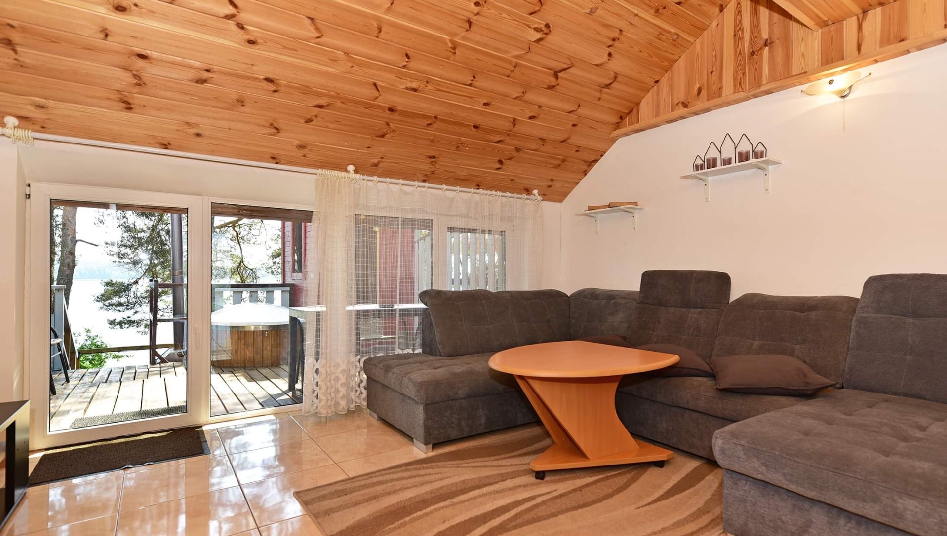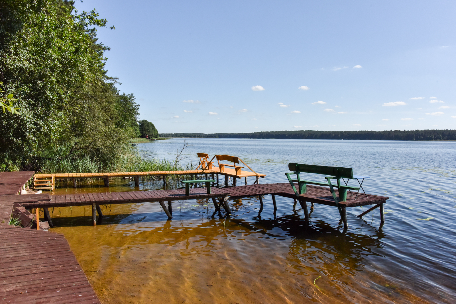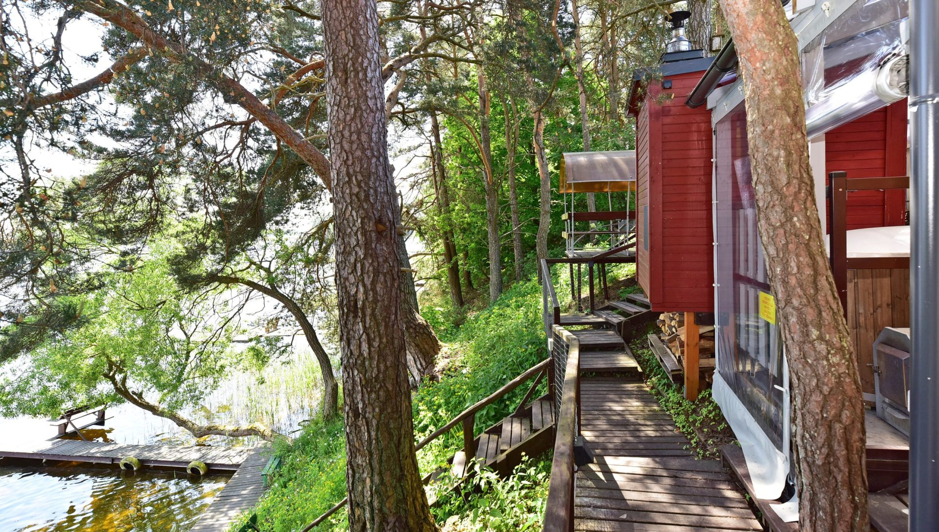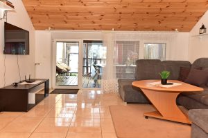 Dviejų aukštų kotedžiukas ant ežero kranto. Pirmame aukšte svetainė su virtuve, tualetas, dušas. Įrengtas grindinis šildymas. Stovi sofa-lova, minkštas kampas, valgomasis stalas. Antrame aukšte viena dvigulė ir viena viengulė lovos. Viso kotedžiuke 6 miegamos vietos. Yra televizorius, internetas. Įrengtas kondicionierius. Įrengta terasa su kubilu ir pirtimi. Iš terasos nusileidimas laiptais iki pat ežero. Lauke pavėsinė, kurioje telpa 6 žmonės. Šalia vaikų žaidimų aikštelė. Įrengtas krantas maudytis bei keturi lieptai. Pakrante ir lieptais naudojasi 7A, 7B, 7C, 7D kotedžiukų gyventojai.
