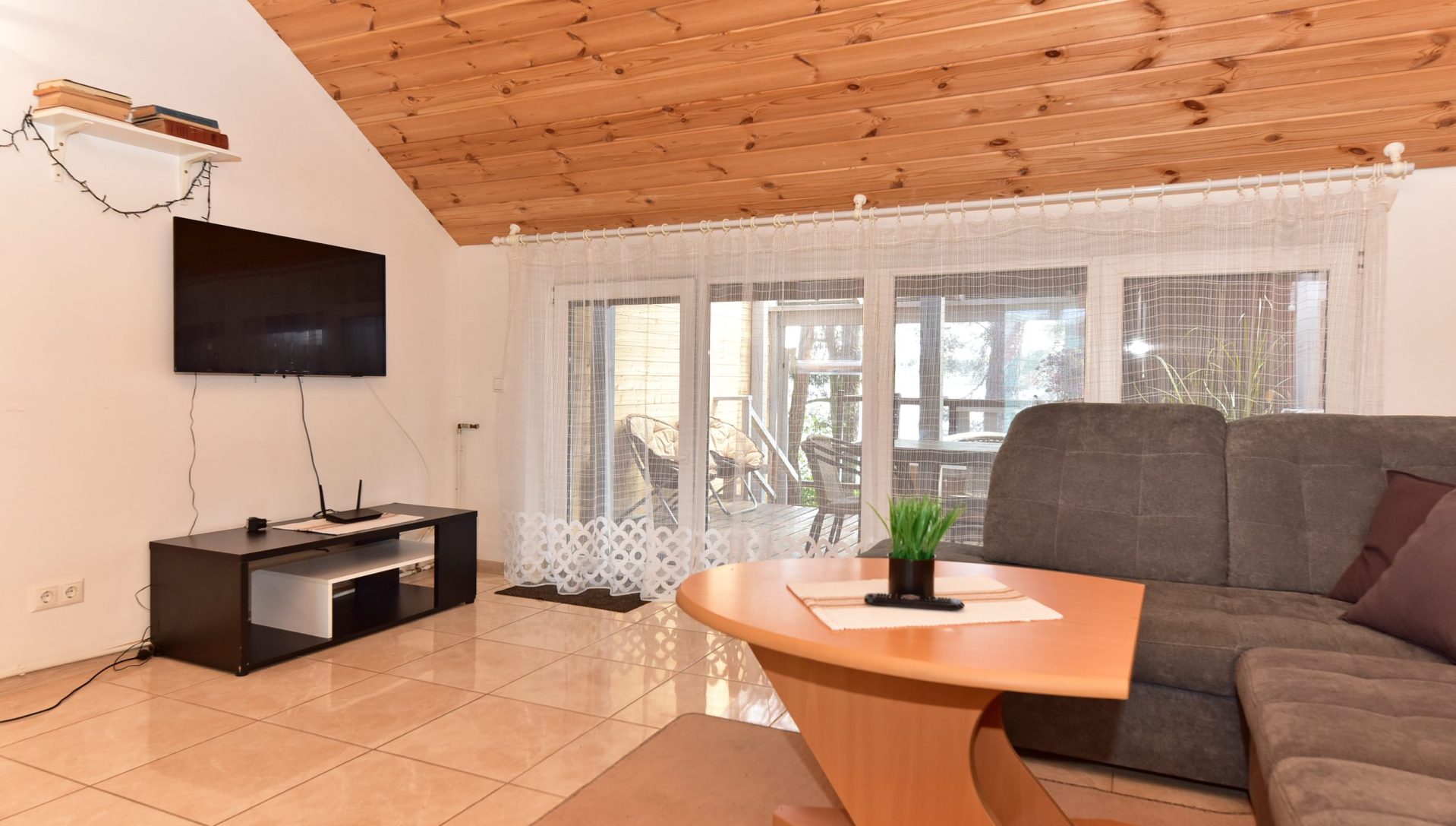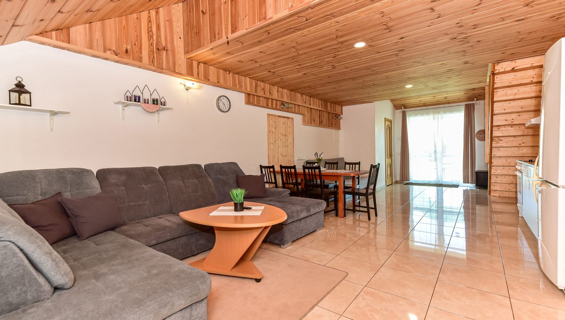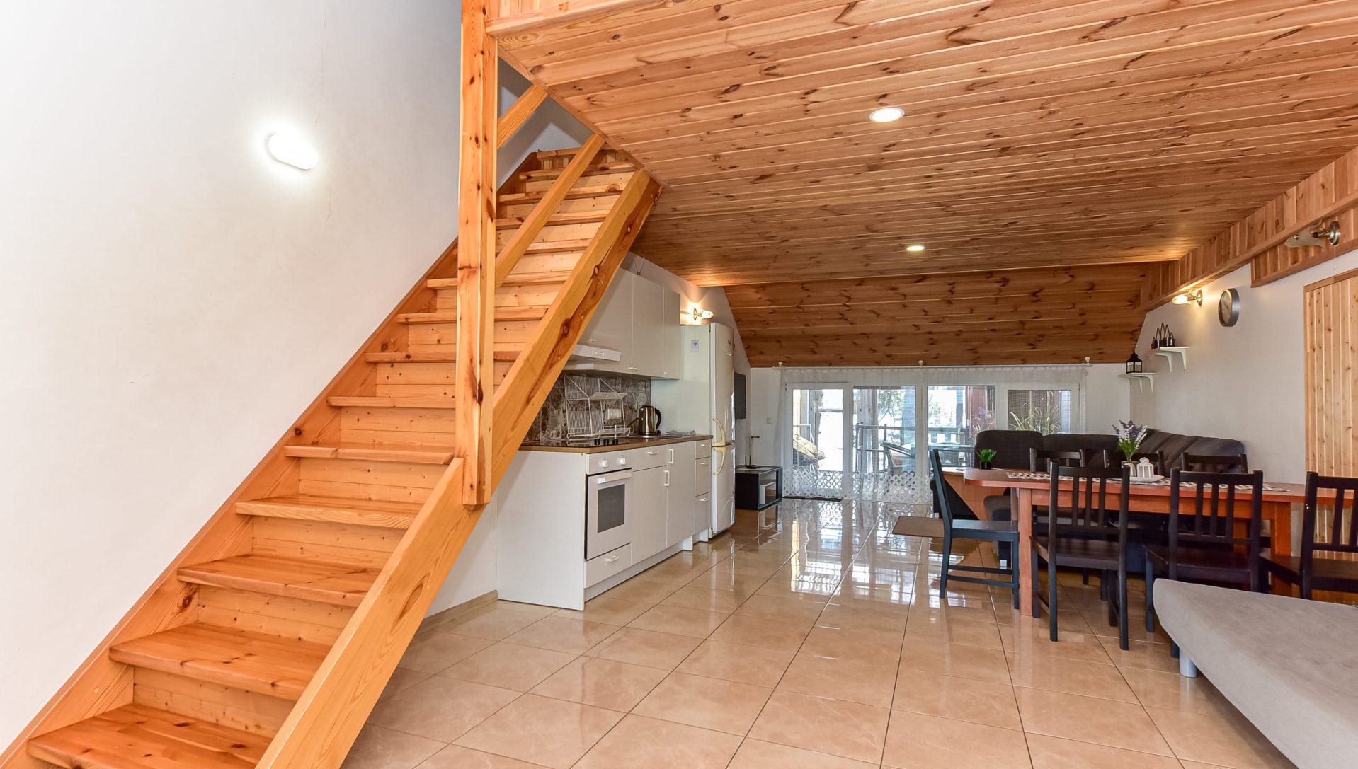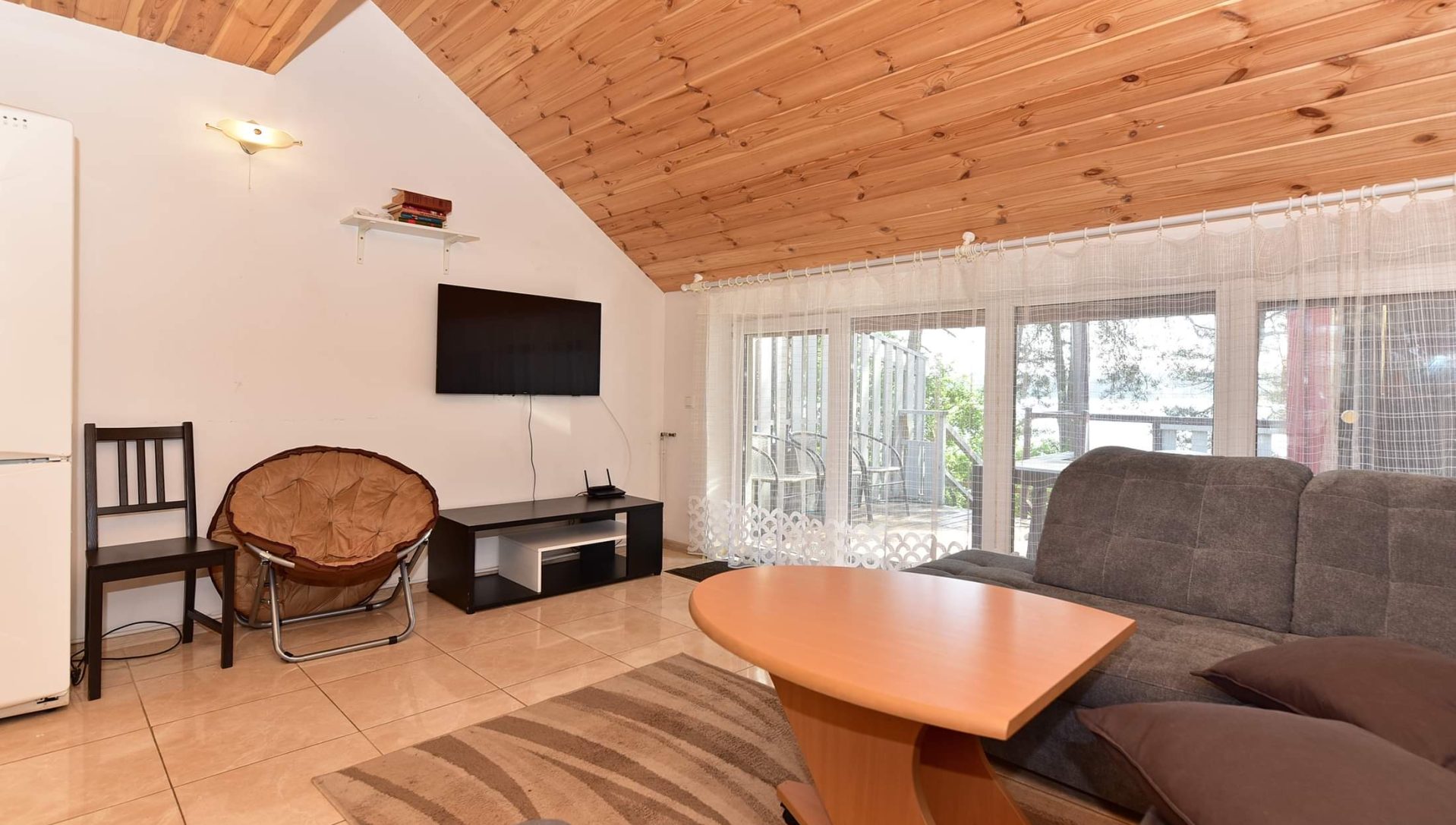 Dviejų aukštų kotedžiukas ant ežero kranto. Pirmame aukšte svetainė su virtuve, tualetas, dušas. Įrengtas grindinis šildymas. Stovi sofa-lova, minkštas kampas, valgomasis stalas. Antrame aukšte viena dvigulė ir viena viengulė lovos. Viso kotedžiuke 6 miegamos vietos. Yra televizorius, internetas. Įrengtas kondicionierius. Įrengta terasa su kubilu ir pirtimi. Iš terasos nusileidimas laiptais iki pat ežero. Lauke pavėsinė, kurioje telpa 6 žmonės. Šalia vaikų žaidimų aikštelė. Įrengtas krantas maudytis bei keturi lieptai. Pakrante ir lieptais naudojasi 7A, 7B, 7C, 7D kotedžiukų gyventojai.