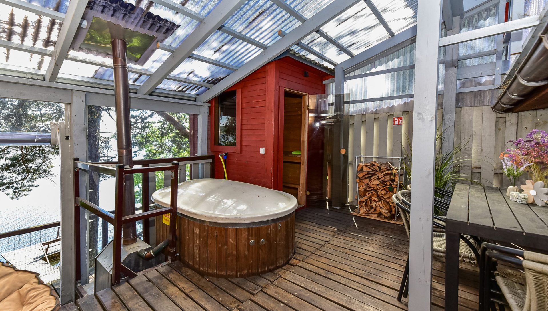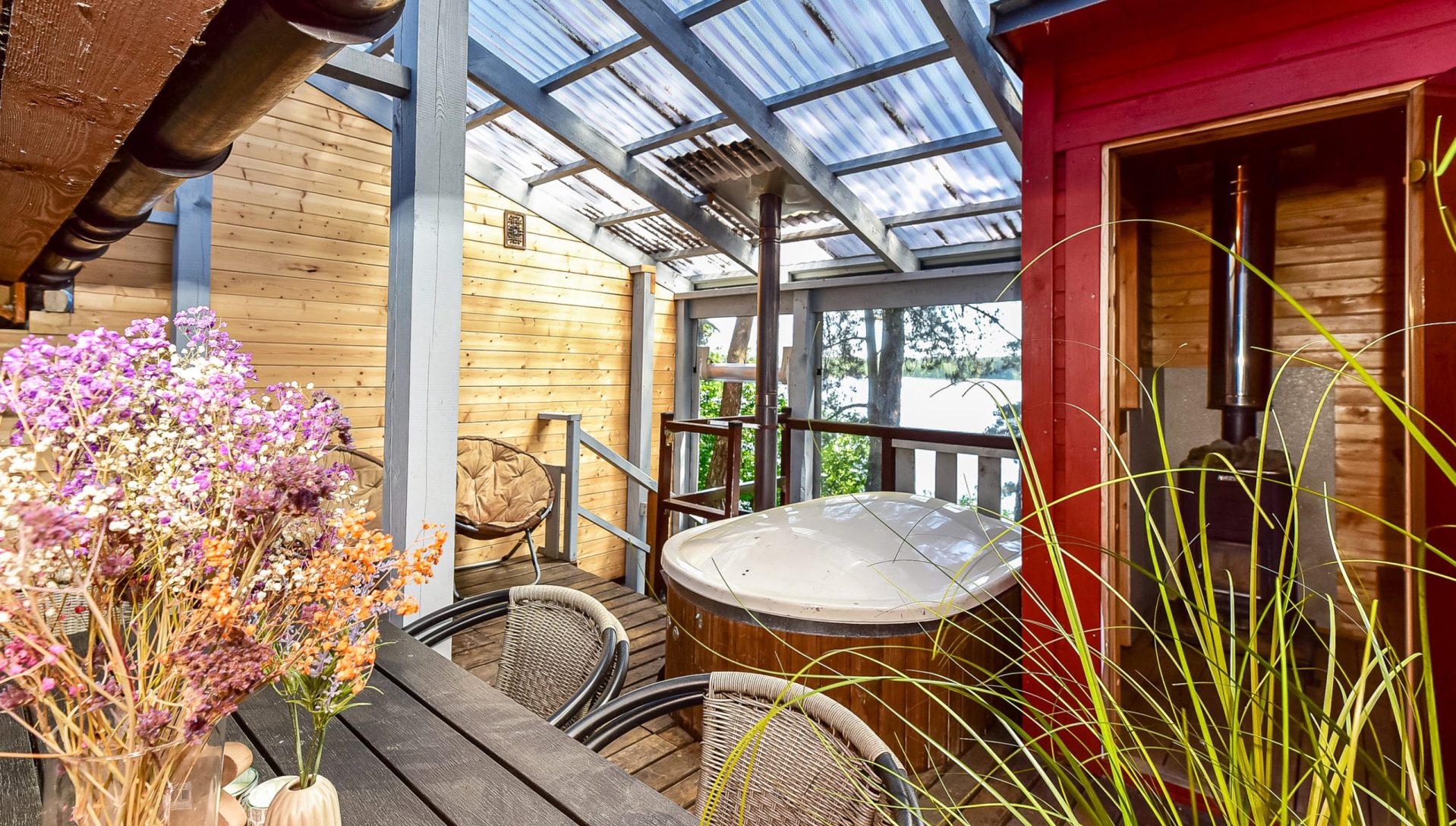 Ofūro kubilas su hidromasažu papildomai 50 EUR dienai, pirtis – 30EUR dienai.
