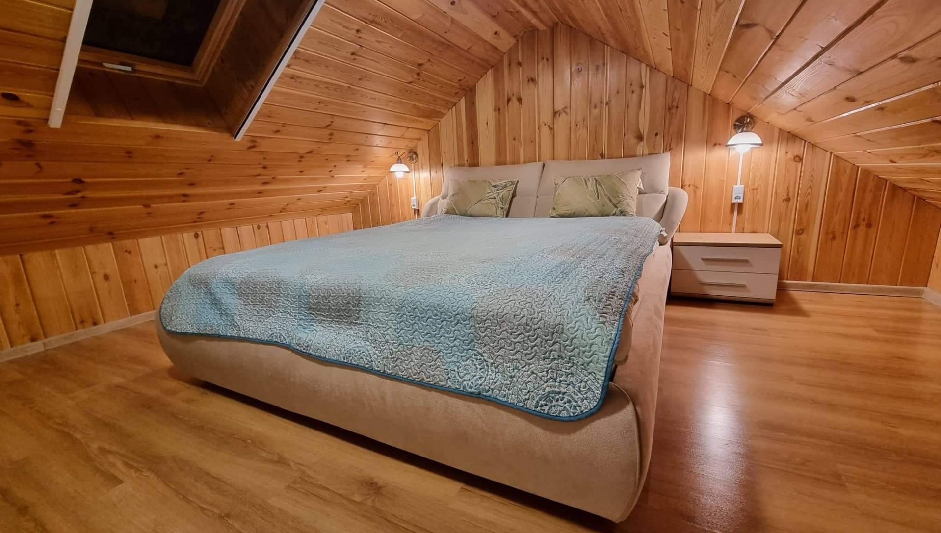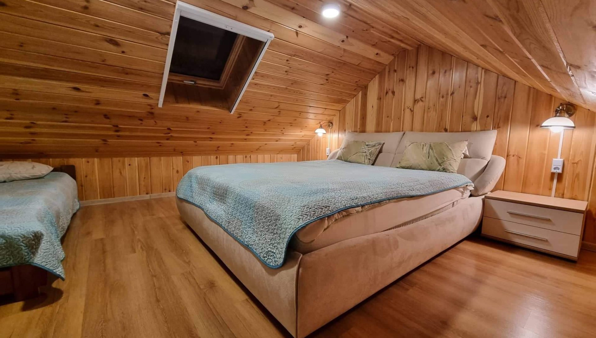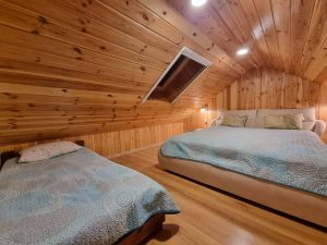 Namelyje yra pagalvės ir antklodės, užvalkalus reikia atsivežti savo. Patalynę galima išsinuomoti (viengulis komplektas – 3EUR, dvigulis komplektas – 5EUR.)